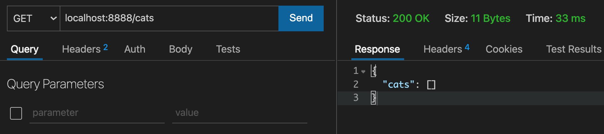 expect(response.body).toStrictEqual(JSON.stringify({ cats: [] }))