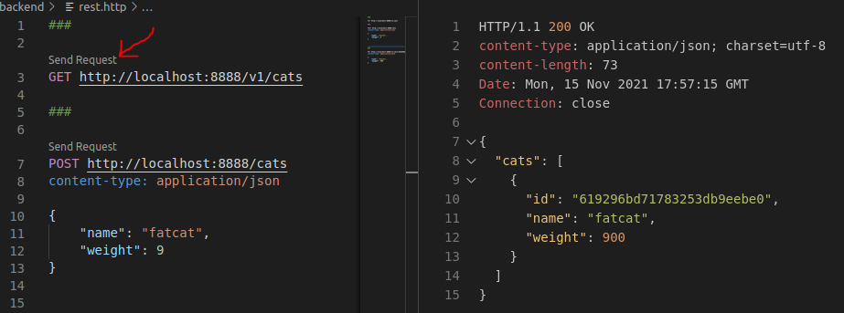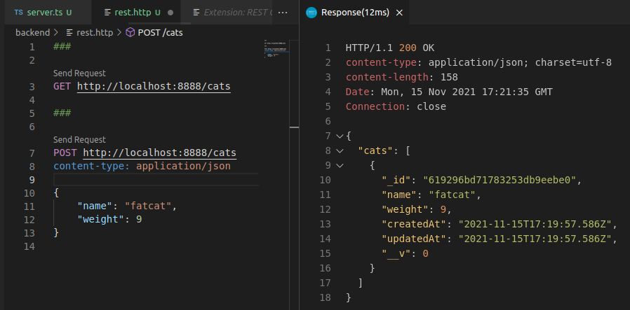 const response = await server.inject({ method: 'GET', url: '/api/cats' })